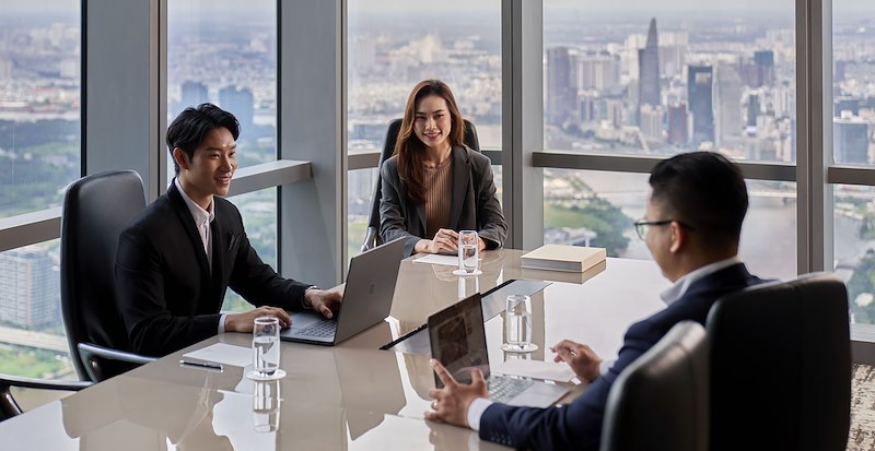 Phòng họp với tầm nhìn toàn cảnh thành phố Hồ Chí Minh và hướng thẳng ra sông Sài Gòn. Trải nghiệm dịch vụ phòng họp trên tâng cao, rất khác biệt và đẳng cấp tại tòa nhà cao nhất Việt Nam - Vinpearl Landmark 81, Autograph Collection.